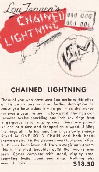 Effect: Those of you who have seen Lou perform this effect on his own shows need no further description because you have asked him to put it on the market for over a year. To see it is to want it.