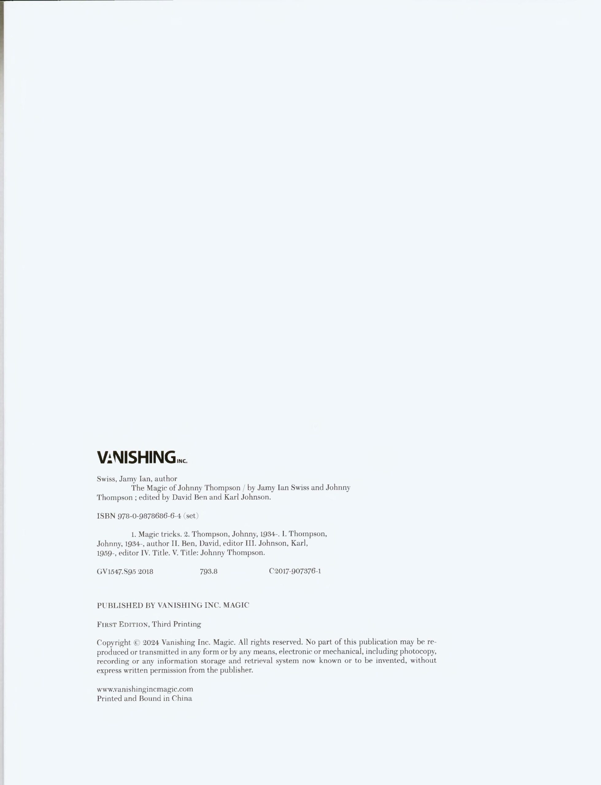 Put simply, The Magic of Johnny Thompson is everything you’d expect—and so much more—from one of magic’s most respected luminaries. It will be a cherished centerpiece in your library.