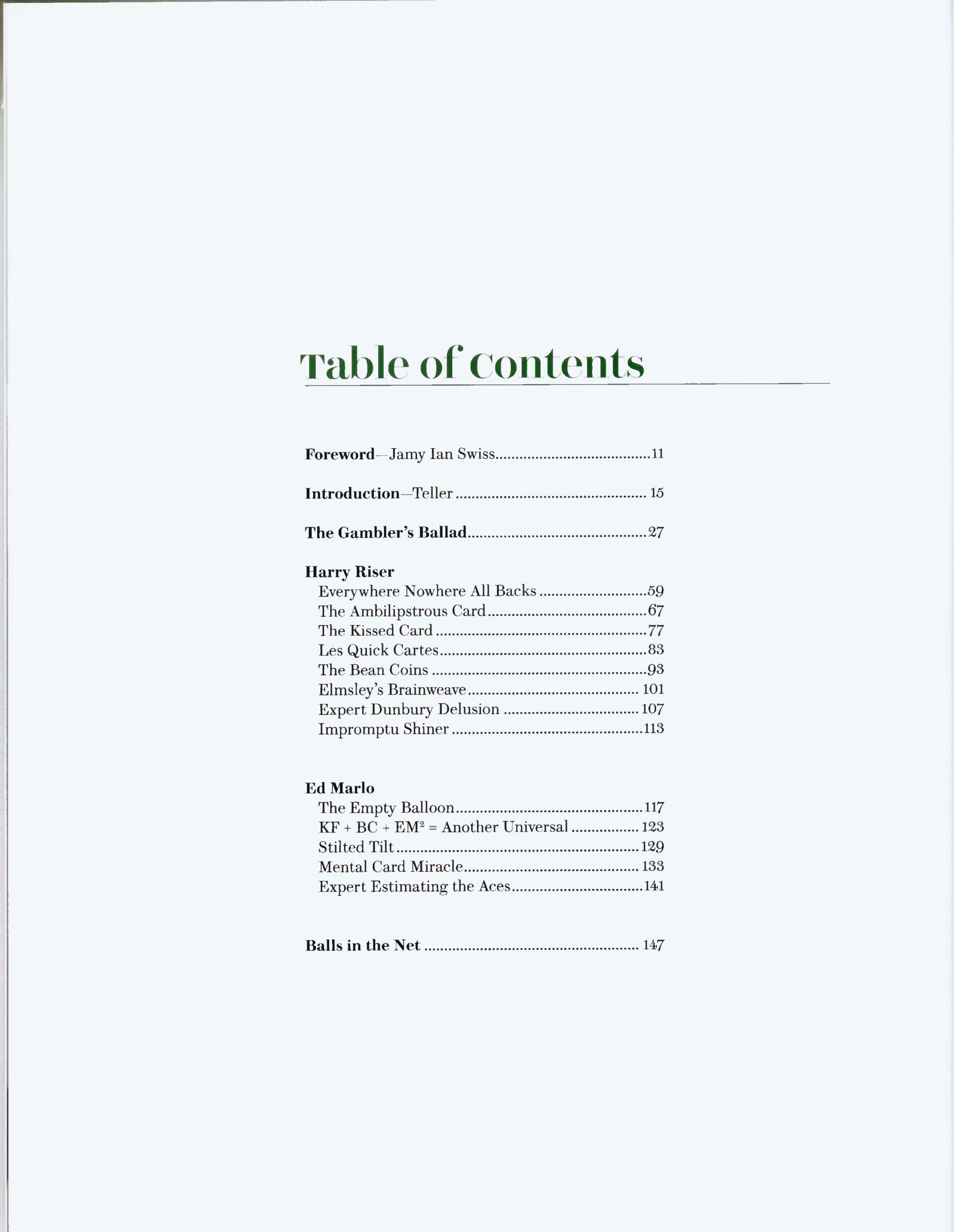 - The Gambler’s Ballad Harry Riser | Everywhere Nowhere All Backs, The Ambilipstrous Card, The Kissed Card, Les Quick Cartes, The Bean Coins, Elmsley’s Brainweave, Expert Dunbury Delusion, Impromptu Shiner