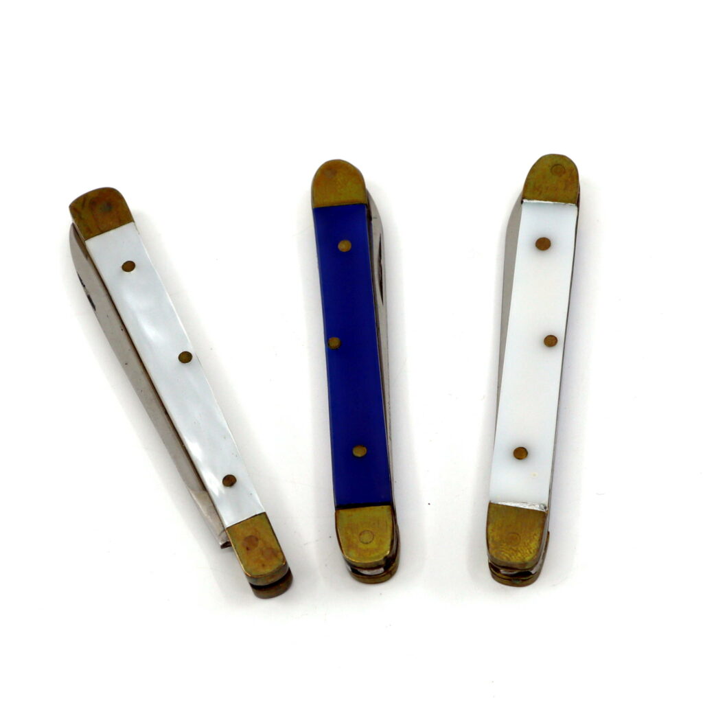 (Notice: the solid white one does not quite match the two blue/blue, blue/white knives.)